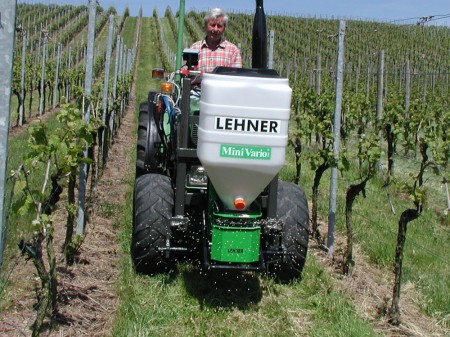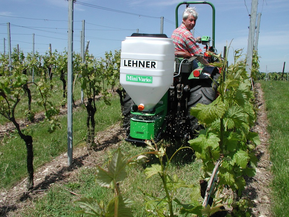 Lehner MiniVario is speciaal ontwikkeld voor inzet in wijn-, asperge- & hopfen teeltvoor breedwerpig strooien.