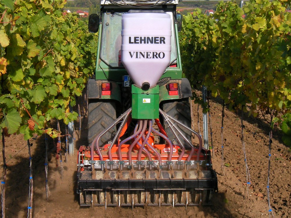 Lehner Vinero voor het strooien in exakte rijen voor wijn-, groente-, hopfen- & tuinbouw.