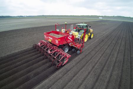 Aardappels poten en rug vormen in één werkgang