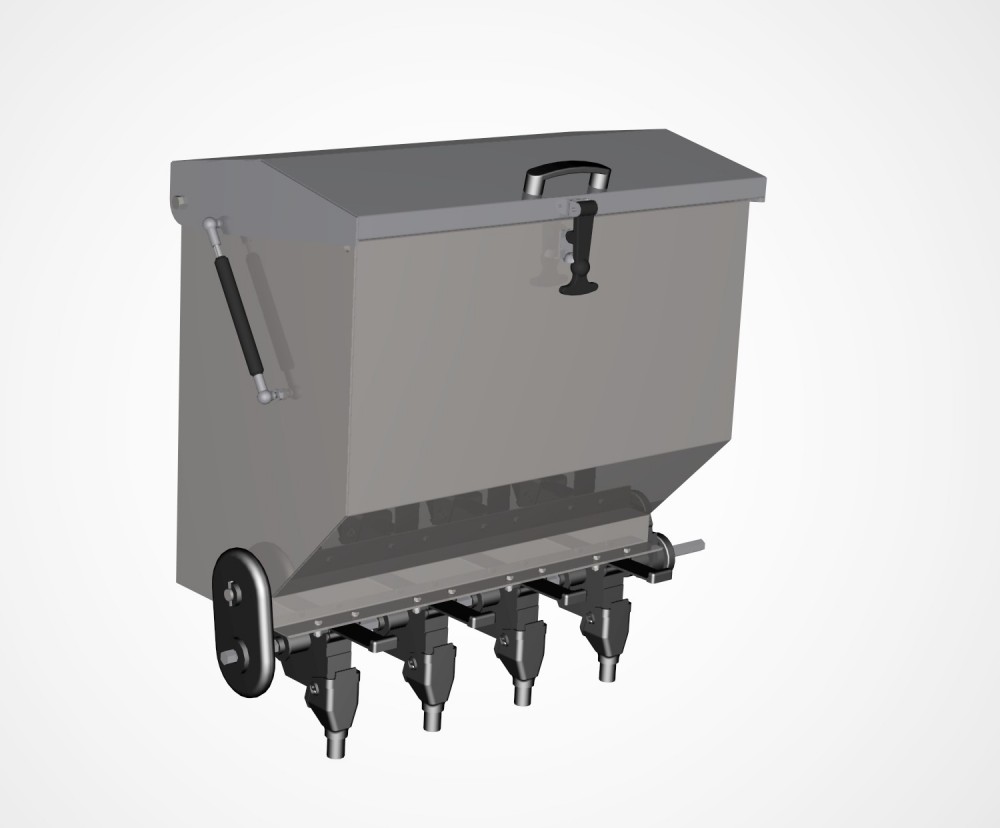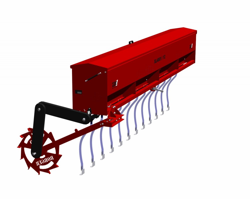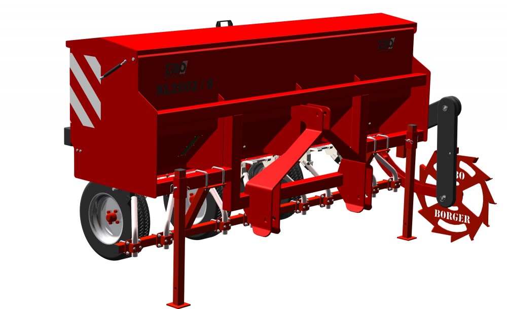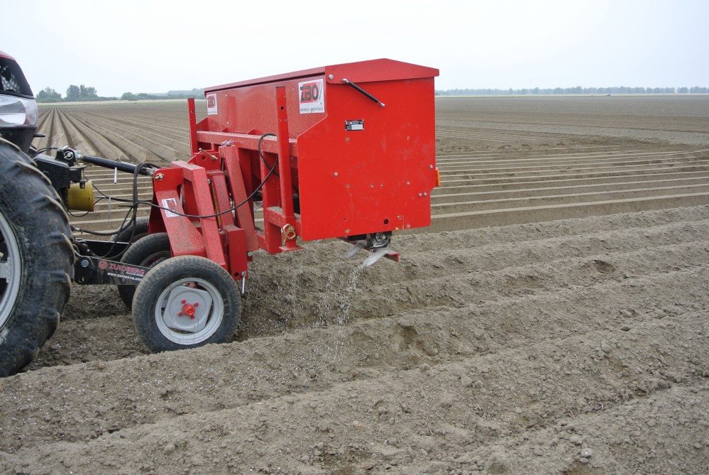 - Nieuwe frontkunstmestunit voorzien van RVS assen, roosters, kunststof kap aan deksel, ketsplaatjes direct onder zaaibuisjes.