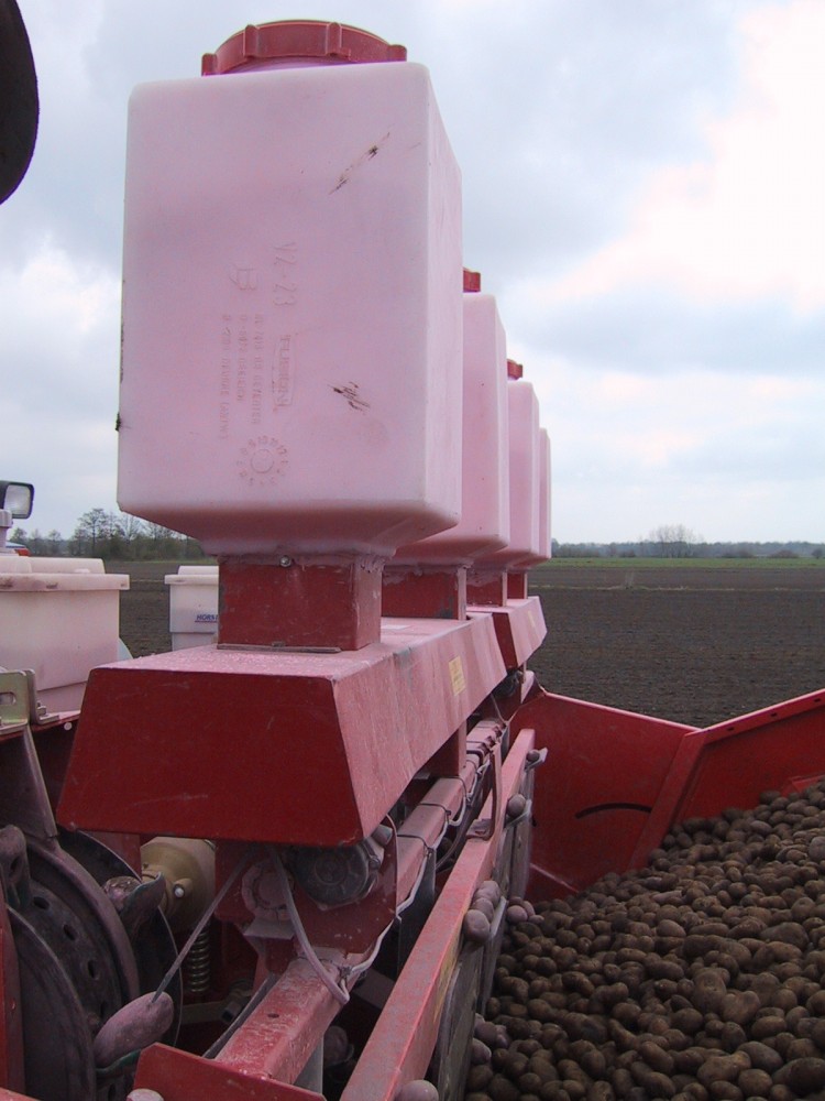 Poederen op het moment van poten is de beste garantie dat poters “schoon” de grond in gaan.
