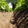 - Minder beschadiging in de rooimachine door grotere hoeveelheid grond op 1e mat.