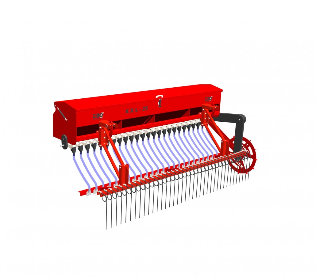ZIBO XL opbouwzaaimachines zijn op iedere grondbewerkingsmachine (vorenpakker, cultivator, schijvenegge, woeler, schoffelmachine, enz.) eenvoudig op te bouwen. Nauwkeurige dosering d.m.v. schuif-radsysteem met geveerde onderklep. De zaaimachine is geschikt voor dosering vanaf 5 kg/ ha, welke is in te stellen dmv. een hendel (grove instelling) en een degelijke RVS draaiknop (fijne instelling).