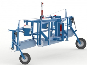 Bij een werkbreedte van 6 meter kent de ZIBO Onkruidstrijker een hydr. vlakstelling aan het basisframe en is de machine aan de beide uiteinden vzv verstelbare steunwielen.